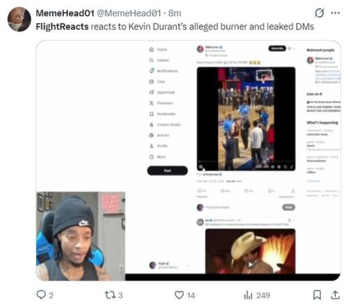 除了杜蘭特疑似小號的事件,北京時間2月16日,美國網(wǎng)紅FlightReacts還在個人社媒上吐槽杜蘭特,他表示杜蘭特在全明星賽前還在玩手機,他寫道:KD啊,別再刷社媒了,被再用你的小號了,不要在社媒上跟別人對線了,好好打籃球吧!停止用社媒吧,專心打完這個賽季再說。
