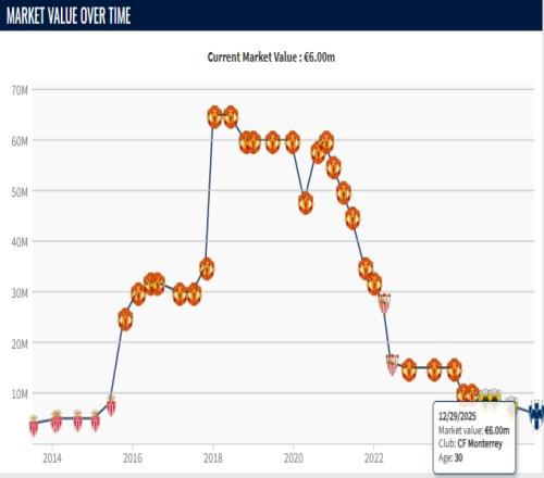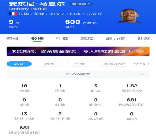 2015年,馬夏爾以6000萬歐的高價從摩納哥轉(zhuǎn)會加盟曼聯(lián),在曼聯(lián)效力期間,馬夏爾的身價最高曾達到6500萬歐。2024年夏天,馬夏爾自由身離開曼聯(lián)加盟雅典AEK,自此淡出球迷視野。