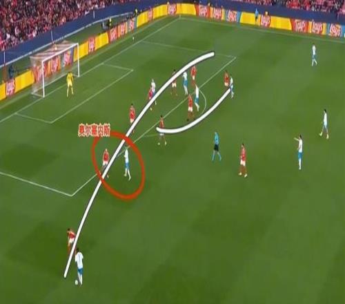 姆巴佩就是在面對對手偏弱的邊后衛(wèi)時,利用自己的速度和爆發(fā)力突然啟動,甩開防守人頭球破門。這樣的打擊方式原本是皇馬最擅長的手段之一,只是姆巴佩一般情況下并不怎么喜歡接應(yīng)傳中球。如果他愿意多嘗試,會是打擊本菲卡的有效手段之一。