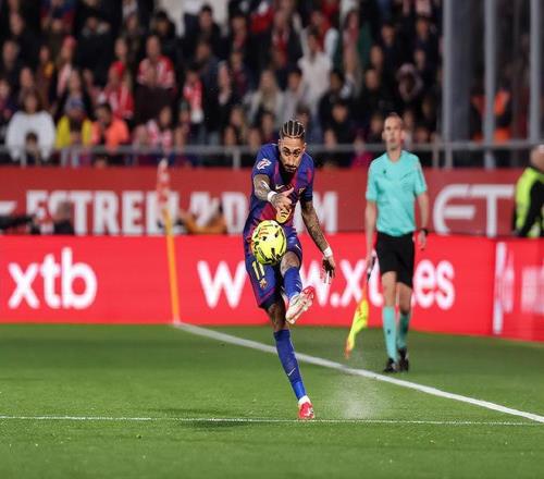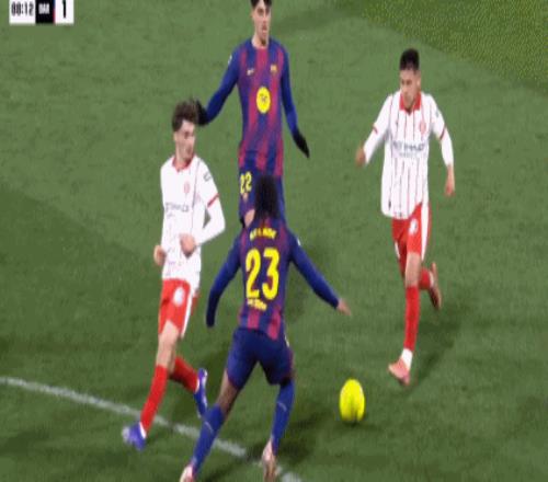 比賽開打后,赫羅納沒有意外擺出大巴反擊態(tài)勢(shì),巴薩場(chǎng)面上明顯有優(yōu)勢(shì),卻遲遲未能進(jìn)球;第16分鐘,巴薩后場(chǎng)斷球反擊,亞馬爾迅速前插速度優(yōu)勢(shì)擺渡維特塞爾形成單刀捅射被出擊的加薩尼加撲出;第22分鐘,維特塞爾中線精準(zhǔn)上搶分到右路,齊甘科夫右路直塞,瓦納特前插低射被霍安-加西亞化解。第27分鐘,赫拉德-馬丁攔截?cái)嗲蛑眰?,拉菲尼亞推進(jìn)到弧頂處直接遠(yuǎn)射擦著橫梁出界;第43分鐘,亞馬爾斜傳,拉菲尼亞打門擊中立柱;半場(chǎng)結(jié)束前,布林德禁區(qū)內(nèi)防守放倒了奧爾莫,巴薩獲得點(diǎn)球機(jī)會(huì),然而亞馬爾的點(diǎn)射卻不偏不倚再次打在了立柱上!