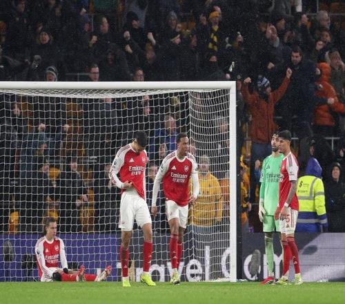 2球落后,狼隊并沒有放棄。第61分鐘,布埃諾右路無人防守情況下打出一腳精彩兜射,皮球直掛遠角,狼隊扳回1球。而在傷停補時第4分鐘,替補出場的湯姆埃多齊一腳抽射,皮球擊中同樣替補出場的卡拉菲奧里彈進網(wǎng)窩,狼隊在最后時刻完成絕平,而槍手則3分變1分。