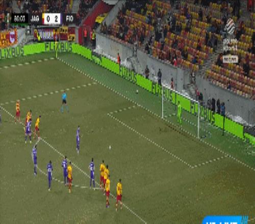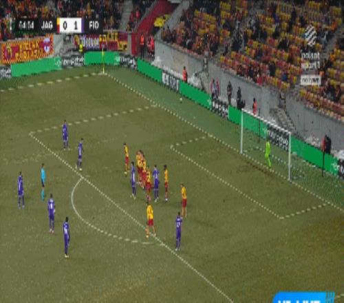 第66分鐘,曼德拉戈拉任意球打門,皮球直掛死角,雅蓋隆0-2佛羅倫薩