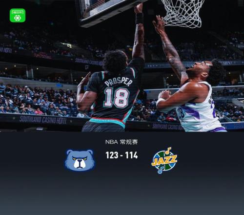 第四節(jié)灰熊GG-杰克遜拿下9分,爵士科利爾拿下10分,最終灰熊123-114戰(zhàn)勝爵士