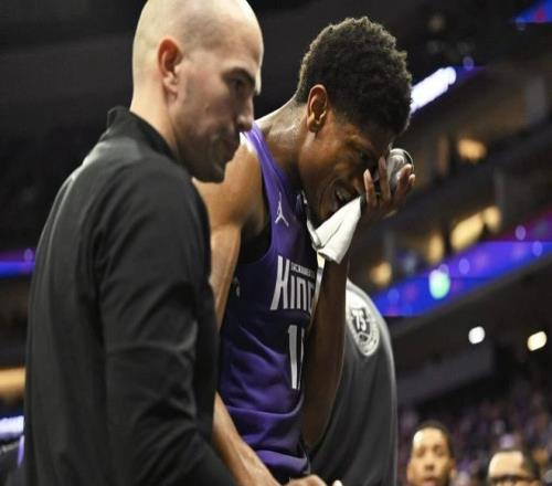 傷病發(fā)生在國(guó)王對(duì)陣快船的比賽里,第三節(jié)的一個(gè)防守回合,亨特全力防守時(shí),被桑德斯一掌拍在面部,當(dāng)場(chǎng)痛苦倒地,眼角直接流出鮮血,只能捂著眼睛離場(chǎng)休息,場(chǎng)面看著都讓人揪心。