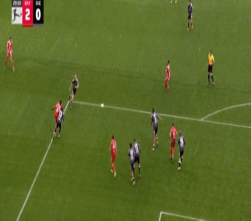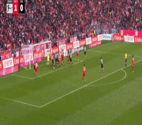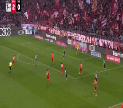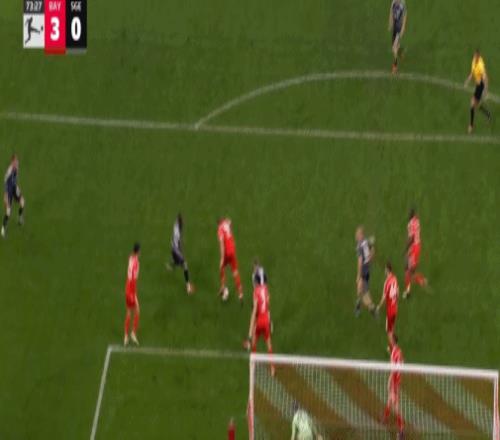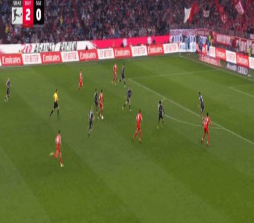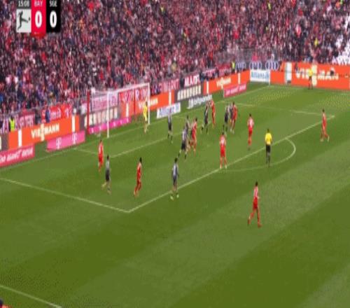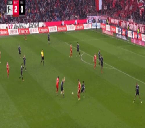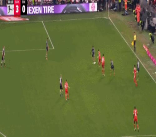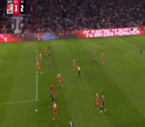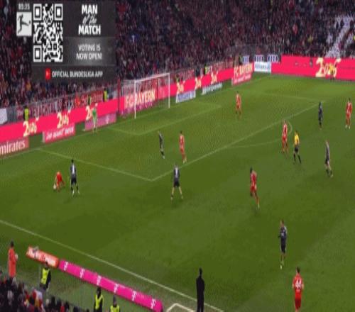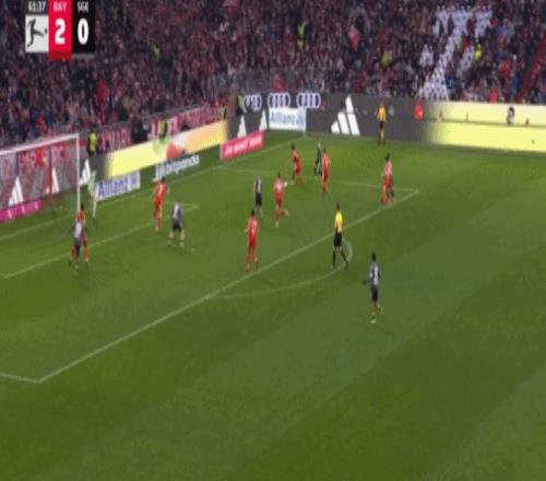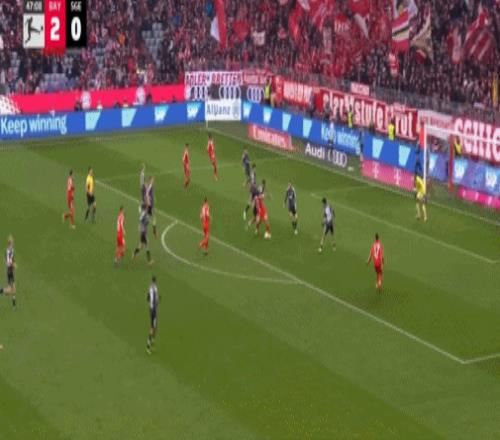 第16分鐘,帕夫洛維奇抽射,桑托斯撲救失誤,拜仁1-0法蘭克福