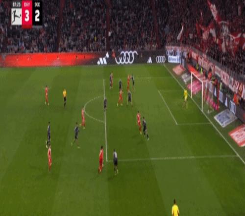 第77分鐘,凱恩送點,伯卡特命中扳回一球,法蘭克福1-3拜仁