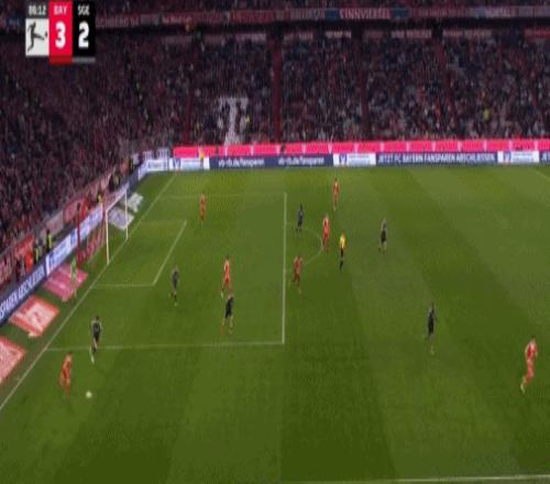 第86分鐘,基米希傳出刀山球,金玟哉將球踢到卡利穆恩多身上彈進球門,拜仁3-2