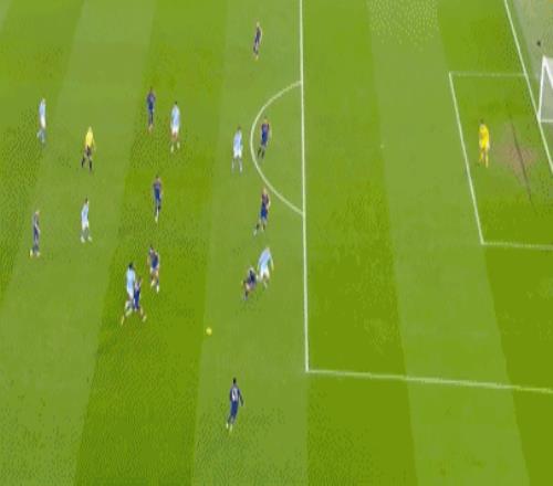 第37分鐘,曼城球員B席中路挑傳,馬爾穆什殺入禁區(qū)低平球傳中,奧賴?yán)w身鏟射打偏,錯(cuò)失帽子戲法!