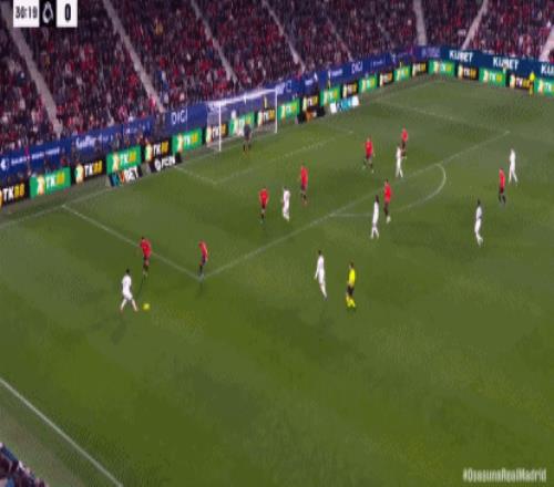 第38分鐘,庫(kù)爾圖瓦出擊送點(diǎn),布季米爾操刀命中,皇馬0-1!