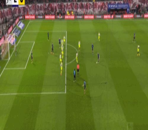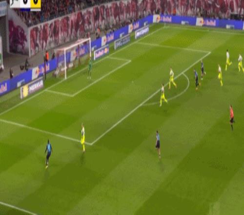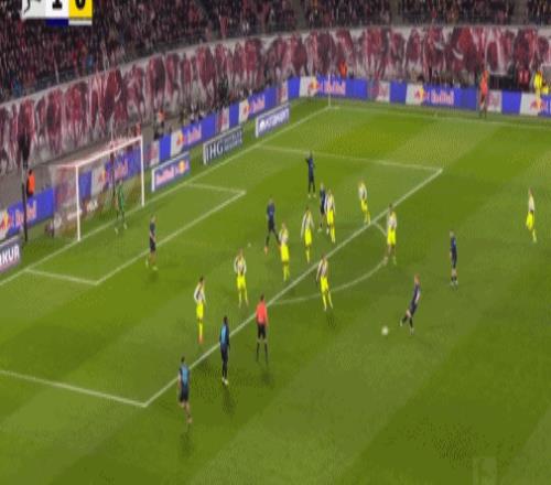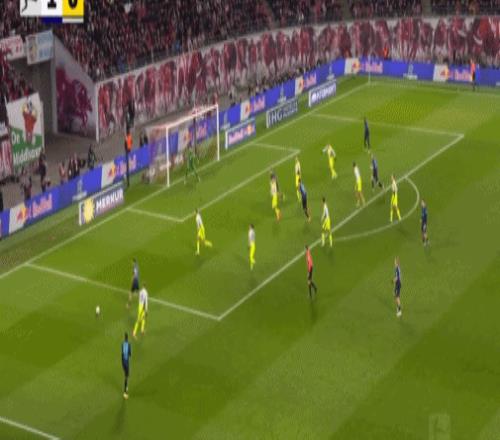 第20分鐘,迪奧曼德晃動(dòng)送助攻,鮑姆加特納破門,萊比錫1-0多特