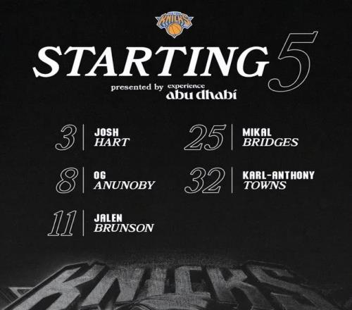 首發(fā)陣容方面,火箭隊(duì)這邊,范弗里特(膝蓋手術(shù))和亞當(dāng)斯(腳踝手術(shù))賽季報銷,教練烏度卡排出的首發(fā)五人組為:阿門-湯普森、賈巴里-史密斯、凱文-杜蘭特、伊森、申京;尼克斯這邊,奎克利因核心肌肉手術(shù)缺陣,首發(fā)陣容則為:布倫森、哈特、布里奇斯、哈特、唐斯。