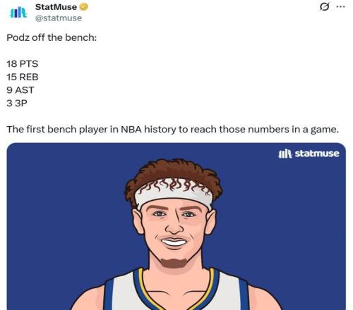 憑借這樣的表現(xiàn),波杰成為NBA歷史上首位單場拿到至少18分15板9助3三分的替補球員。