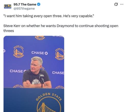 反觀追夢格林,前一場三分5中0,科爾在賽前采訪中不得不鼓勵追夢如果有空位機會就要果斷出手。