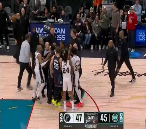 次節(jié)比賽,馬刺進(jìn)攻火力升級本場首次單節(jié)得分30+,且限制活塞連續(xù)兩節(jié)單節(jié)不足30分。馬刺追到29-29,活塞一波6-0攻勢取得領(lǐng)先,馬刺連中三分一波9-0攻勢奪回領(lǐng)先。馬刺繼續(xù)維持47-45領(lǐng)先,坎寧安推倒卡斯?fàn)栆l(fā)沖突,凱爾登推搡坎寧安,杜倫手指凱爾登,裁判吹罰凱爾登與杜倫技術(shù)犯規(guī)?;钊徊?-1攻勢反超3分,馬刺回敬9-4攻勢,馬刺單節(jié)33-28凈勝5分,上半場結(jié)束馬刺57-55反超活塞。前兩節(jié)比賽,馬刺三分22中11,瓦塞爾5記三分18分與尚帕尼4記三分12分,文班亞馬9中2得到7+7;活塞三分18中5,坎寧安10+3+6與霍蘭11+6。