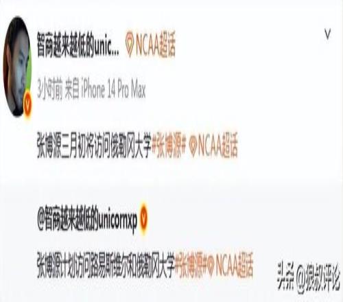 媒體人王健發(fā)文點評:“張博源三月初將訪問俄勒岡大學”